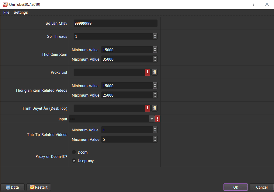 Phần mềm sẽ hỗ trợ người dùng “chạy” bằng một trong hai cách là Dcom hoặc Proxy. Việc bật tắt Dcom hay sự đa dạng của Proxy sẽ làm cho các lượt tăng view như người dùng thật tương tác với video của mình.
